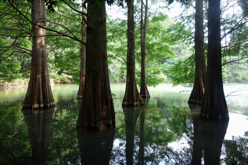 | 篠栗町に「篠栗九大の森」という九州大学の敷地内に約2キロの遊歩道を配置した森で、大学と地域が共同で整備や管理を行っているものです。遊歩道を歩いていくと「水辺の森」に「落羽松」と呼ばれる根元が水に浸かった北アメリカ原産の落葉針葉樹が研究のために育てられており、神秘的な光景を楽しむことが出来ます。 利用時間:4月〜9月 6時〜18時 / 10月〜3月 7時〜17時 |