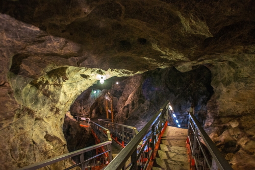 | 球泉洞は熊本県球磨郡球磨村・球磨川沿いを走る国道219号・鎗倒しと呼ばれる岩壁の上に立地する権現山の地下にある鍾乳洞です。 1973年3月に発見された延長4.8kmあり、全国6位・九州では最大の鍾乳洞で、その内観光用に公開されているのは800mです。3億年もの年月をかけて自然がつくり出したものです。鍾乳洞の中は1年を通じて16度の気温で保たれているので、冬は暖かく夏は涼しい鍾乳洞です。また「恋人の聖地」に認定されています。 入洞料金:大人:1,050円・中学生:735円・小学生:630円・幼児(3歳以上):525円 探検コースは別途630円 入洞時間:9:00〜17:30 ※4月〜7月・9月〜11月 9:00〜17:00 ※12月〜3月 9:00〜18:00 ※8月 |