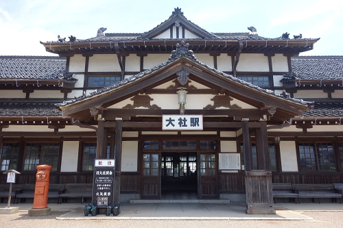 | かつてJR出雲市駅からJR大社駅を走っていたJR大社線の終着駅として出雲大社参拝の乗客で賑わっていた駅で、大社線廃止と共に廃止された駅ですが、出雲大社を模した造りで国の重要文化財に指定されており、また近代化産業遺産にも認定されている建築物です。 |