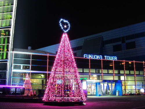 | 福岡タワー入口にあるピンクのツリーイルミネーション。 |