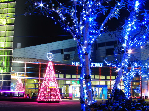 | 福岡県では初の恋人の聖地に認定された福岡タワーでは、2月1日から3月14日での期間にLOVEイルミネーションという企画で、イルミネーションが点灯されます。福岡タワーの最上部にはハート型のイルミネーションが点灯され、雰囲気を盛り上げています。他に福岡タワーでは恋人の聖地らしく、恋人同士でのイベントが開催されます。詳しくはHPを御確認ください。 イルミネーション点灯期間:2011年2月1日〜3月14日 点灯時間:18:00〜24:00 (広場のイルミネーションは22:00まで) |