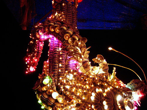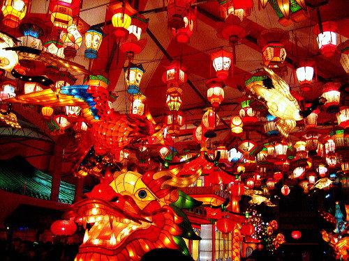 | このお祭りは、長崎在住の華僑の人々が、中国の旧正月(春節)を祝うための行事として始めたもので、もともと「春節祭」として長崎新地中華街を中心に行なわれていましたが、平成6年から規模を拡大し、長崎全体のお祭りとして、冬を彩る一大風物詩となりました。 期間中は、長崎新地中華街はもとより、浜市・観光通りアーケードなどの市内中心部に、約1万5千個にも及ぶランタン(中国提灯)が飾られ、湊公園をはじめ各会場には、大型オブジェが所狭しと飾られます。 |