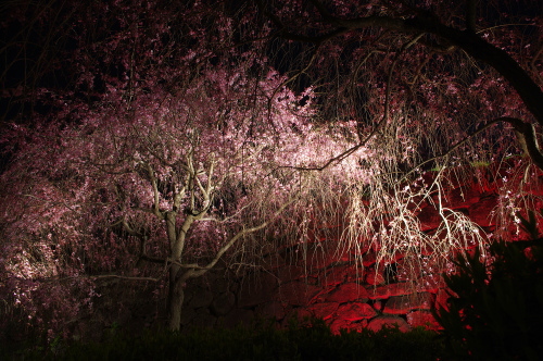 | 天守閣に向かう道沿いのしだれ桜。 |