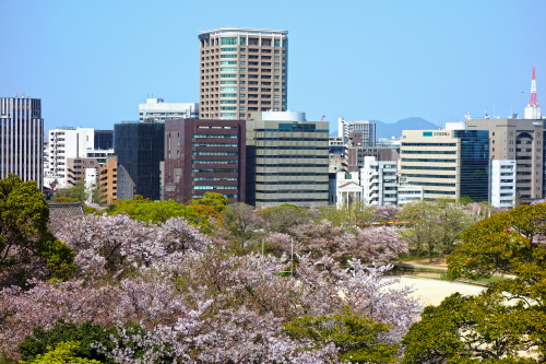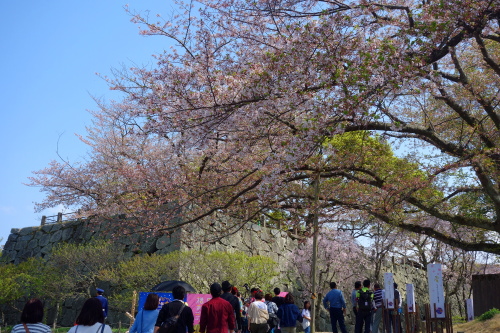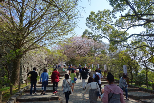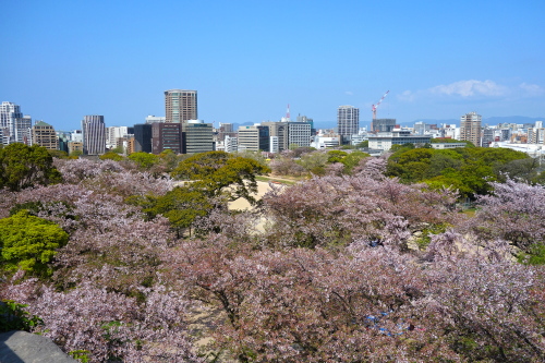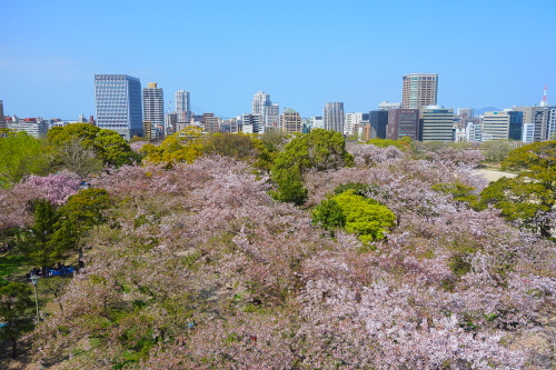 | 江戸時代に福岡の地を治めていた黒田氏が築城した福岡城は、現在では広大な敷地が整備され舞鶴公園として、市民の憩いの場として利用されています。また、福岡市の桜の名所として有名な舞鶴公園では、桜の開花時期に合わせて福岡城さくらまつりが行われます。舞鶴公園内には約1,000本の桜が咲き誇り、沢山の花見客で賑わいます。 ※今回はソメイヨシノが見頃を過ぎた時に訪問しています。 |