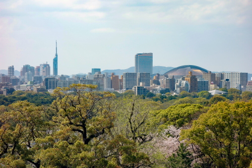 | 天守閣跡展望台から舞鶴公園を望む。 |