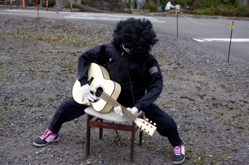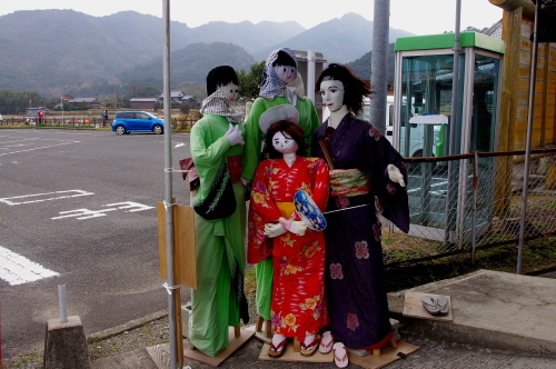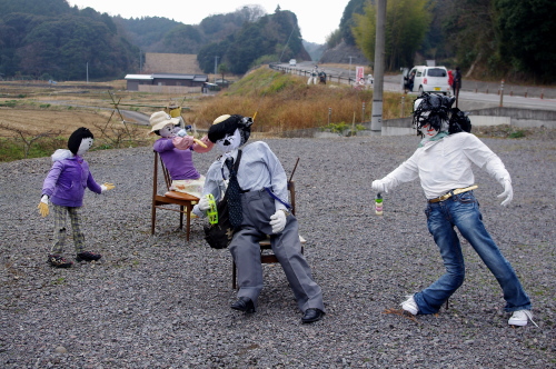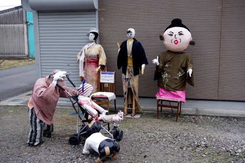 | 真木大堂の前には案山子がありました。 |