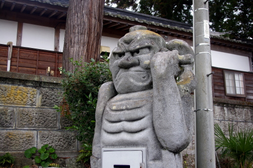 | 真木大堂入口にある「ご意見箱」になっている石像。 |