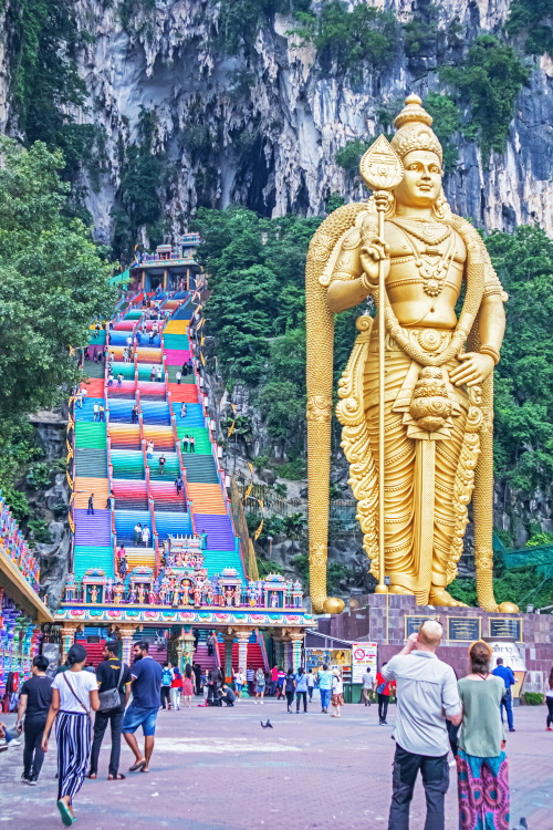 | バトゥ洞窟入口のスカンダ神と272段の階段。 |