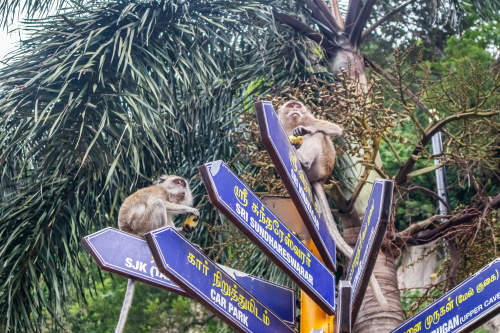 | バトゥ洞窟手前に生息している野生の猿。 |