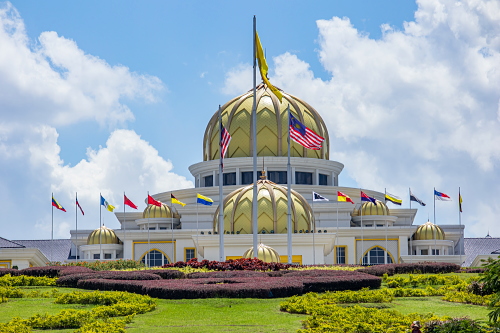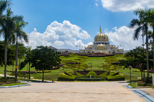 | クアラルンプールにある王宮イスタナ・ネガラは、マレーシアの元首である国王が住む王宮で、マレーシアには州ごとにスルタンと呼ばれる州の王がいて、5年交代でアゴンと呼ばれる互選で選出される任期制の国王でその役目を担う事になっています。王宮へは自由に入る事が出来ず、立派な大きな門から中を見る観光スポットです。 |