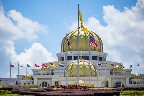 | 王宮の雰囲気。マレーシア国内の州旗とマレーシア国旗。 |