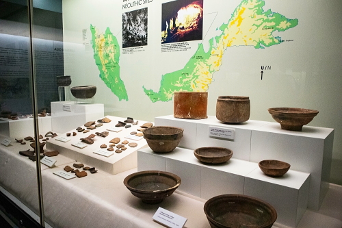 | ギャラリーA(先史時代)の展示物。土器などの伝来。 |
