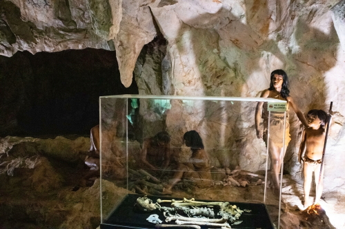 | ギャラリーA(先史時代)の展示物。人骨と当時の生活を再現。 |