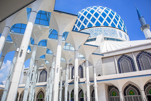 | クアラルンプールから西にある都市・シャーアラムにある巨大なモスク「スルタン・サラディン・アブドゥル・アジズ・モスク」は別名「ブルーモスク」と呼ばれ、マレーシア最大のモスクであり東南アジアでもインドネシア・ジャカルタにあるイスティクラル・モスクの次いで2番目の規模を誇るモスクです。またドームを取り囲む4本のミナレット(尖塔)は約142mで世界屈指の高さを誇り、ブルーと白のコントラストが一際目を引く美しいモスクです。クアラルンプールからだと電車のKTMコミューターを利用し、シャーアラム駅で下車し駅からはタクシー(Grab)を利用した方が約1時間弱と一番早く到着します。モスク内の見学は一定人数が集まり次第、ガイドの方によって案内されます。従って自由に歩き回る事は出来ません。 イスラム教には厳しい戒律があるため、モスクの入場においてはドレスコードを守る必要があります。肌の露出を避けるためのローブは入口で無料でレンタル可能です。 入場時間:月〜木:10:00〜12:00、14:00〜16:00 土日:10:00〜12:00、14:00〜16:00、17:00〜18:30 金:礼拝のためClosed 入場料:無料 |