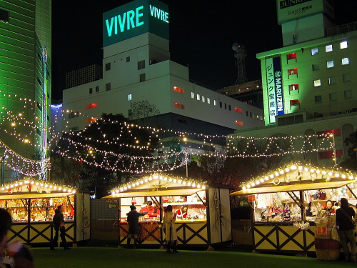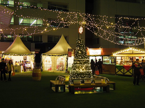| 福岡の商業中心地・天神にある福岡市役所西側のふれあい広場では、「マルシェ ド ノエル天神」というイベントが開催されています。福岡市と姉妹都市であるフランス・ボルドーのクリスマスの風物詩である「マルシェ ド ノエル」が楽しめるというイベントです。様々なお店が出展されており、主にフランスの食文化を味わう事が出来ます。 |