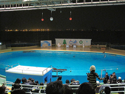 | 福岡市東区の海ノ中道にある「マリンワールド」では、クリスマスの期間中、夜間営業が開催されています。クリスマス用にいろんなイベントがあります。 |