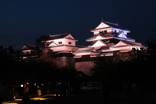 | 松山市のシンボルでもある松山城へは、ロープウェイか徒歩で行く事ができます。ロープウェイは夜間は運行しませんが、期間限定で夜間営業が行われ、松山城のライトアップも見る事ができます。松山城は時間帯により4色のライトで照らされて美しい姿を観賞できます。ちなみに松山城は重要文化財に指定されています。 |