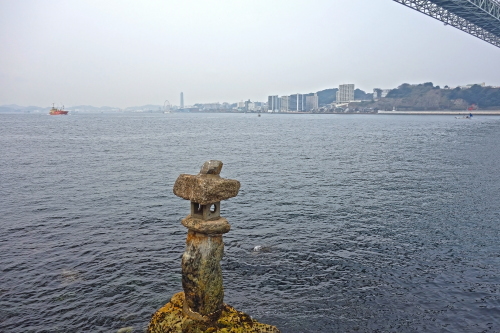 | 関門海峡と石塔。 |