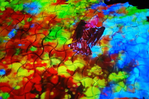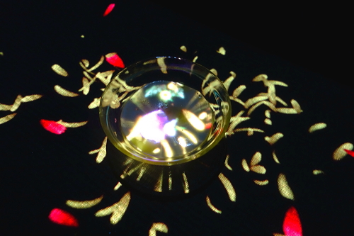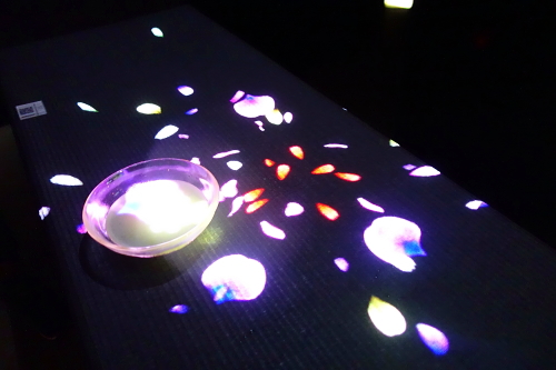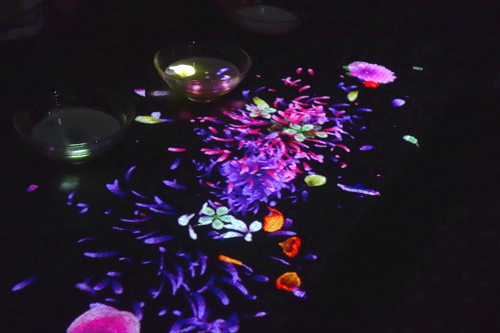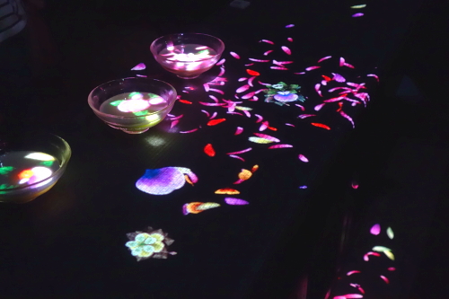| 小舟と共に踊る鯉によって描かれる水面のドローイング。 |