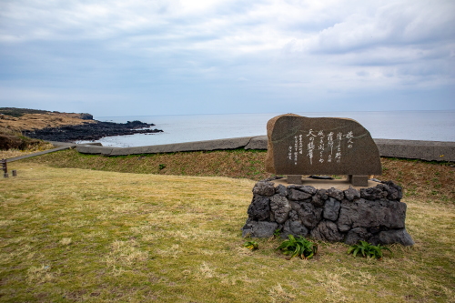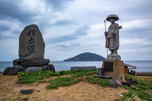 壱岐・対馬・五島~古代からの架け橋~」の構成資産であり、風致景観が持つ観賞上の価値及び学術上の価値は高いとされています。 三井楽の地は遣唐使が派遣された時代には日本の西の最果ての地で、東シナ海を横断する直前の最終寄港地として利用されてきた場所であり、石碑に刻まれている「辞本涯」とは日本のさいはてを去るの意で、真言宗の開祖である空海も遣唐使の船に乗って唐に渡ったとされています。 |