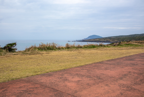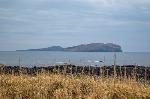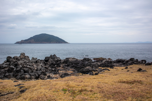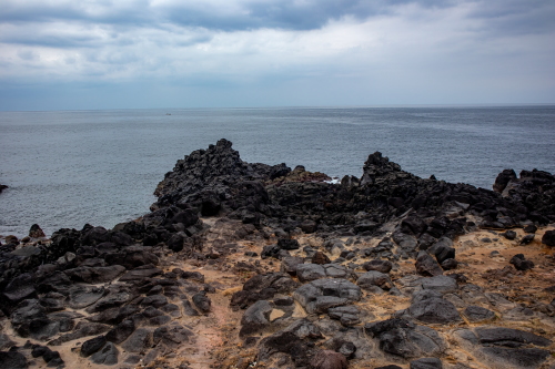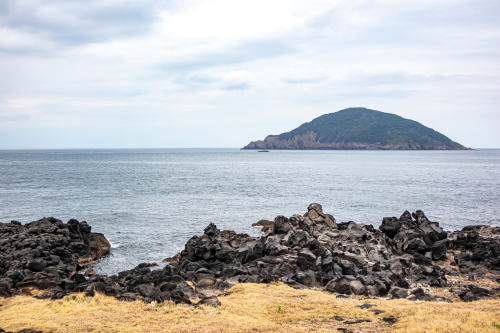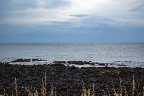| 東シナ海と玄武岩質の溶岩礫。 |