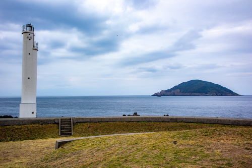 | 三井楽にある灯台と東シナ海に浮かぶ姫島。 |