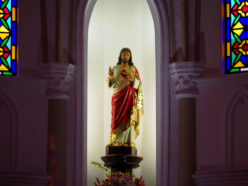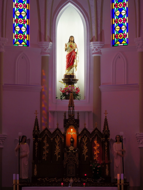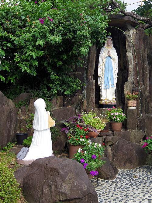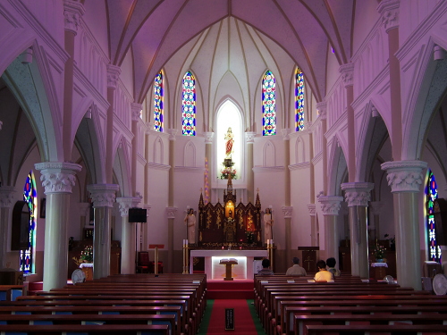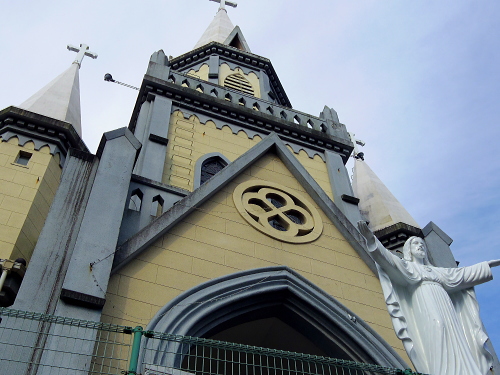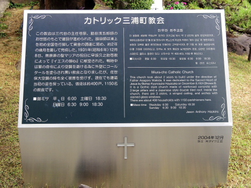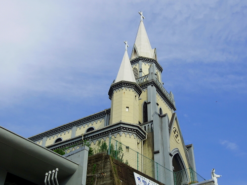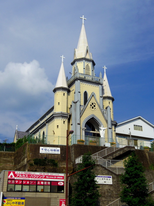 | 佐世保駅に程近い、小高い丘の上に建てられている教会・カトリック三浦町教会は、3代目主任司祭である脇田浅五郎により昭和6年に約2年の歳月を経て完成した教会です。戦時中は軍の命令で空襲を避けるために、教会全体にコールタールを塗らされ黒い教会になり、そのため空襲の被害を受けることなく今に至っています。 |