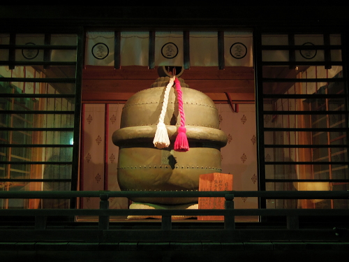 | 手水舎裏には重さ450kgの日本一の大鈴が奉納されています。 |