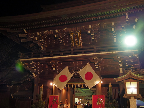 | 日の丸が掲揚されている楼門。 |
