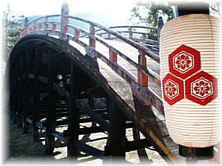 | 反橋。岩国の錦帯橋みたいなアーチ型の橋です。 角度が急で、また板が平らなのでまともには渡れ ない感じです。 |