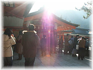 | 厳島神社の入り口。参拝客でいっぱいです。 大人300円。 |