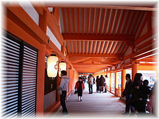 | 厳島神社の中。外国人観光客も参拝していました。 |