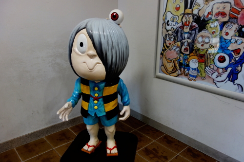 | 水木しげる記念館は境港市出身である「ゲゲゲの鬼太郎」の作者・水木しげるの画業の集大成を展示した記念館で、水木自身が世界中から集めた妖怪関連のコレクションや独自に制作したオブジェの展示などを中心に、水木しげると妖怪の世界を展示・紹介する博物記念館です。また境港観光の中心にもなっています。 入館料:700円(大人) 午前9時30分〜午後5時 |