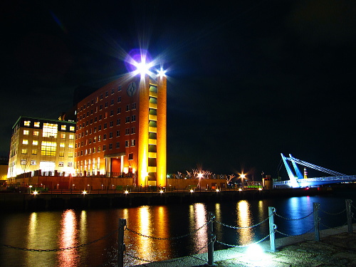 | 門司港ホテルとブルーウイングもじ(はね橋)。 |