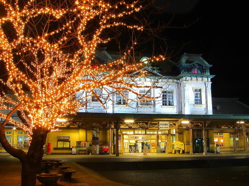 | 北九州市門司区にある観光地で、JR門司港駅周辺地域の建造物とホテル・商業施設などを大正レトロ調に整備した観光スポットです。市内で唯一成功している観光事業でもあります。ライトアップされたレトロ建築物や、約30万球の電飾で彩られた樹木などで、冬のレトロは魅力一杯です。加えて「門司港レトロナイトファンタジー」が織りなす光と灯の競演が、ファンタスチックな幻想空間を創出します。 |