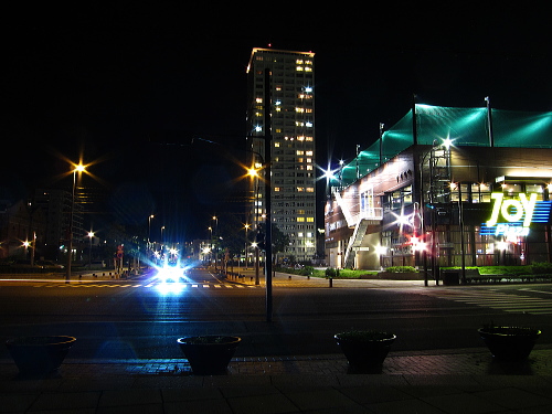 | JR門司駅北口は赤煉瓦プレイスを中心とした「門司ウォーターフロント」として、都市計画による整備が図られています。その海側に面する公園は、近所の住民がジョギングしたり散歩したりと憩いの場になっています。また、遠景ですが小倉都心部と下関の夜景が観賞できます。車は赤煉瓦プレイス駐車場に30分以内であれば無料で駐車できます。 |