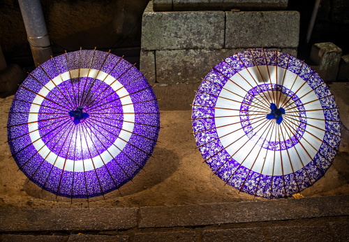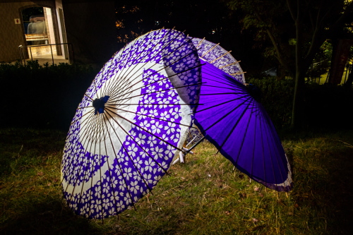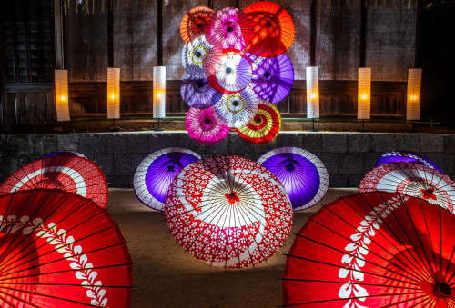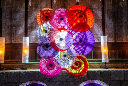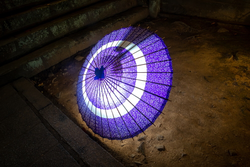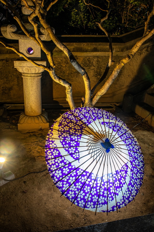 | 神楽堂前の番傘ライトアップ。 |