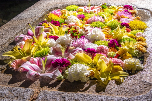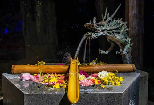 | 花手水のライトアップ。 |