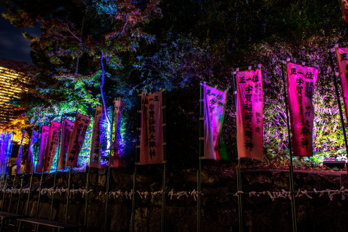 | 神輿殿横のライトアップ。 |
