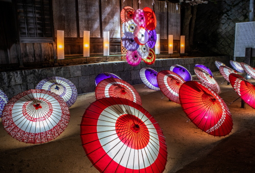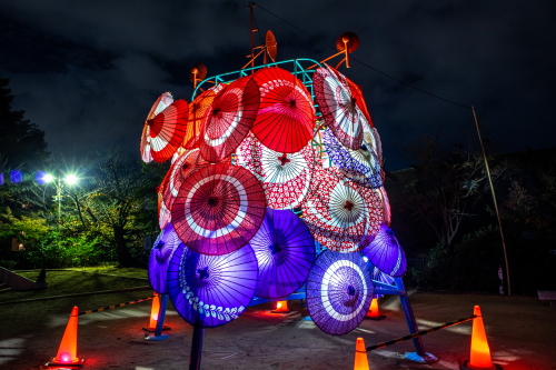 | 紅葉山公園の番傘ライトアップ。 |