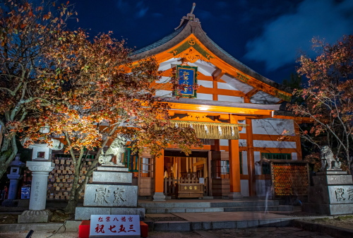| 紅葉八幡宮拝殿のライトアップ。 |