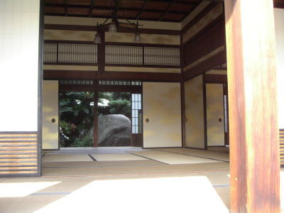 | 毛利氏庭園の邸宅内部。1階の大広間です。 ここには昭和天皇もお泊りになられました。 |