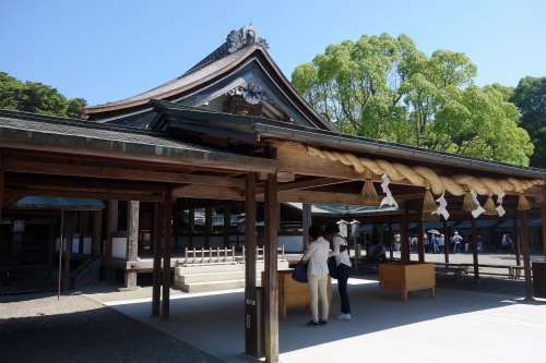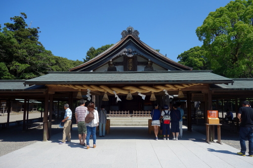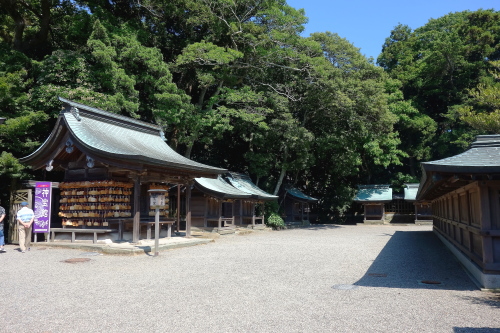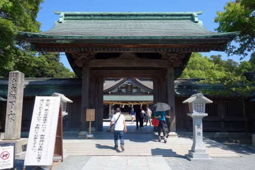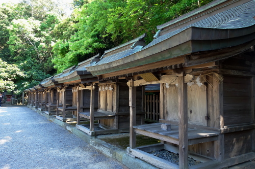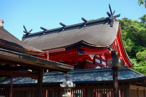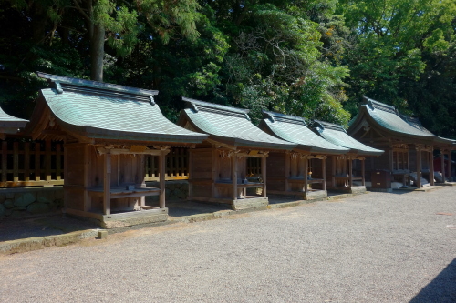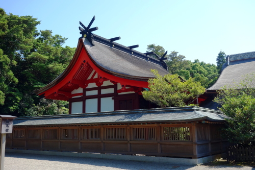 | 宗像市にある宗像大社は、日本各地にある宗像大社・厳島神社・宗像三女神を祀る神社の総本社で、日本の弁天様の総本宮の社です。宗像大社は沖ノ島の沖津宮・筑前大島の中津宮・宗像市田島の辺津宮の三社の総称になっていますが、一般的に辺津宮をさす場合が多いです。辺津宮の本殿・拝殿は国の重要文化財に指定されており、神宝館には約8万点もの国宝が展示されています。 |