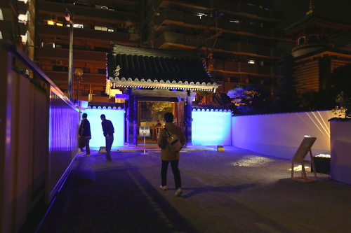| 本堂前の光の演出。 |