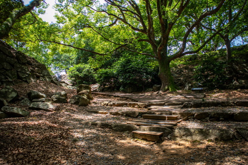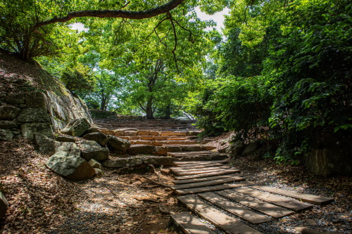 | 名護屋城大手口から登城坂を見る。 |