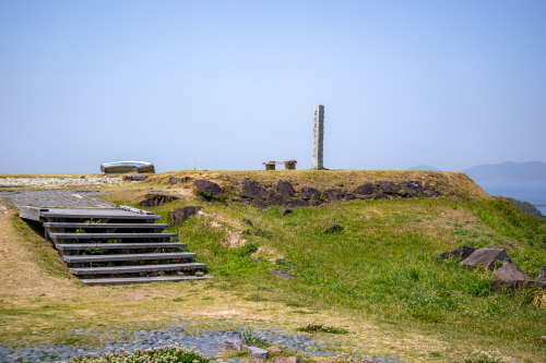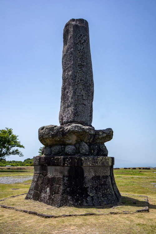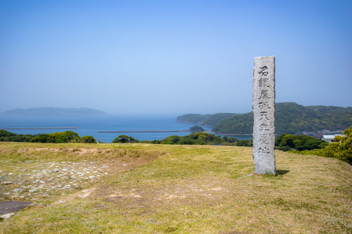 | 名護屋城本丸にある東郷平八郎「名護屋城址」碑。 |
