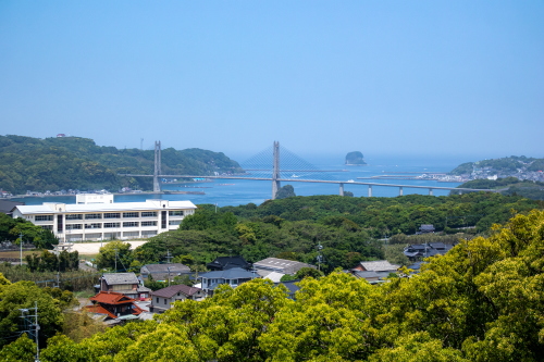 | 名護屋城天守台から呼子大橋を見る。 |