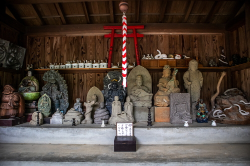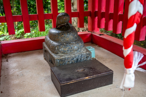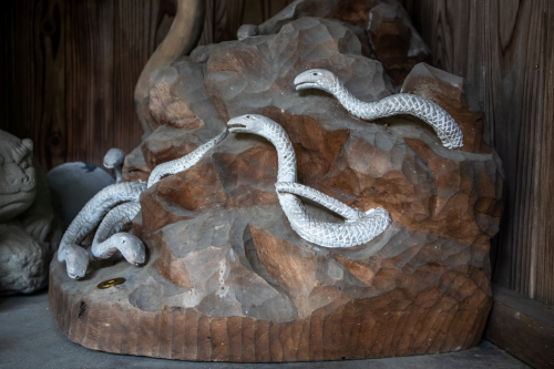 | 祀られている蛇の像。弁財天の使いとされている。 |