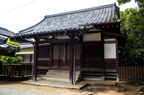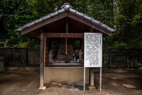 | 宗栄寺地蔵堂。この下に岡田半左衛門利良とその子佐右衛門の着けていた肌着・武具等が埋められているという。 |