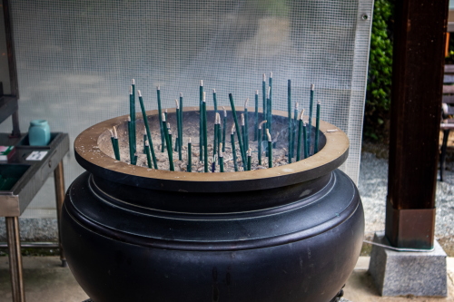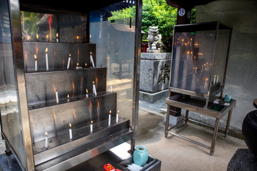 | 参拝者が火を灯した沢山の蝋燭。 |